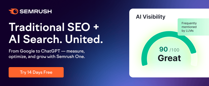 Search is evolving fast — from traditional engines to AI chat platforms — and teams need a unified way to stay ahead. Semrush One brings SEO and AI search intelligence together in one powerful solution, combining two full toolkits under a single subscription.