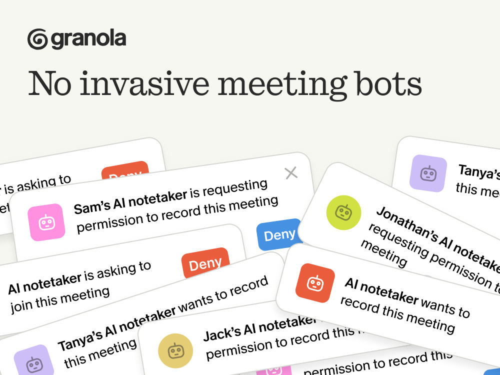 Ever had a meeting where a random bot joins the call and, suddenly, everyone’s distracted? Granola works differently. There are no meeting bots. Nothing joins your call.