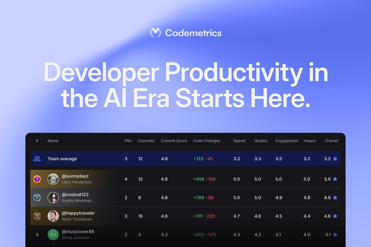 | What does your code say about your team? Codemetrics analyzes real code—not standups, not self-reports—to surface who’s shipping high-quality work and where teams are slowing down. If you manage engineers and want signal over noise, this is worth a click. |